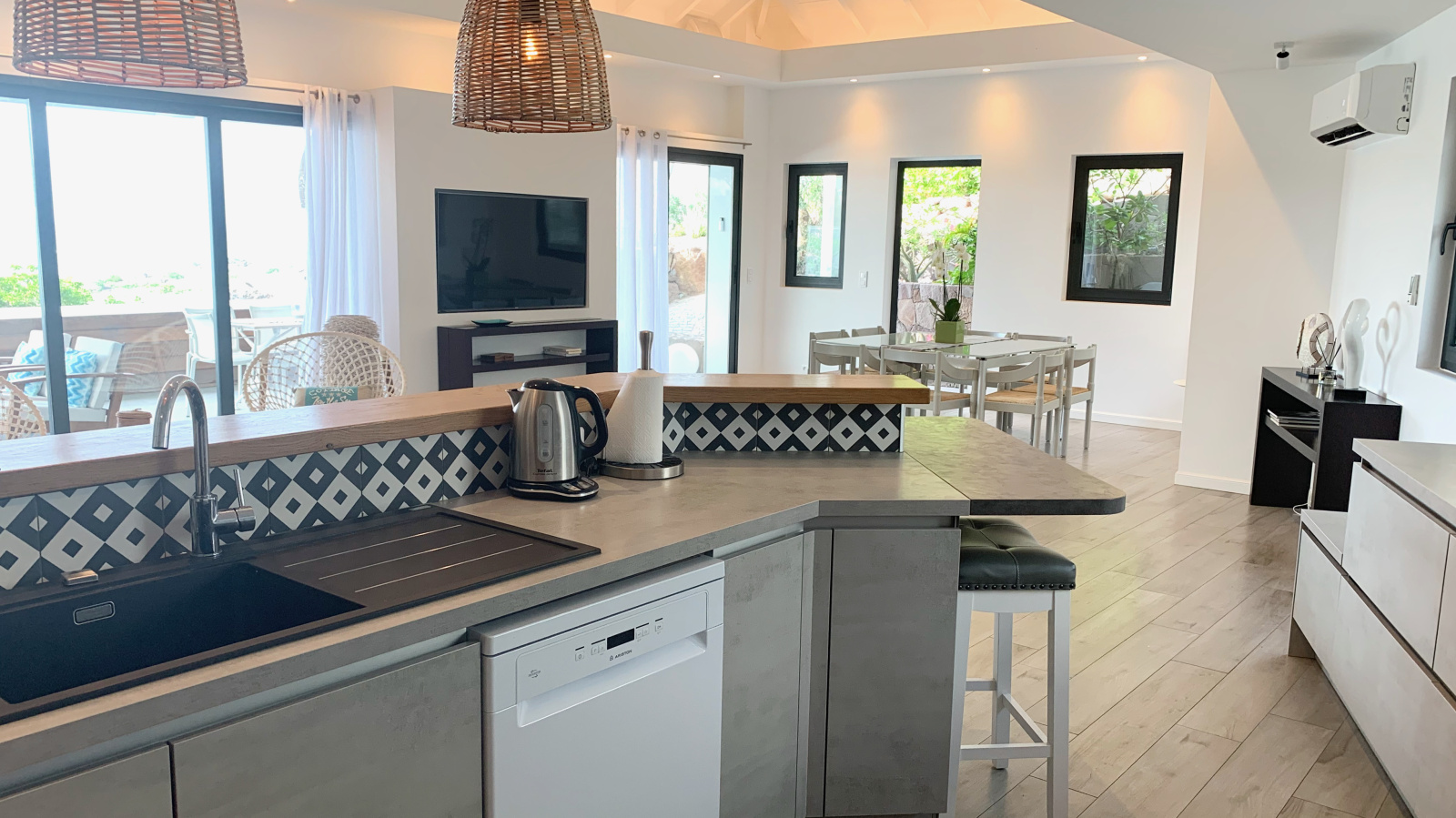 Saint-Barthélemy (97133)Villa neuve. La villa LAGON vous accueille pour un séjour au paradis, avec la plus belle vue panoramique sur le lagon, l'île Tortue et l'océan. Entièrement climatisée ou ouverte sur la piscine, la villa très confortable et moderne, offre toutes les commodités nécessaires (Wifi, TV, enceintes connectées,...). Le séjour et le salon sont ouverts sur l'espace extérieur et la fabuleuse piscine. Les trois chambres possèdent chacune leur salle d'eau et dressing. Calme assuré.