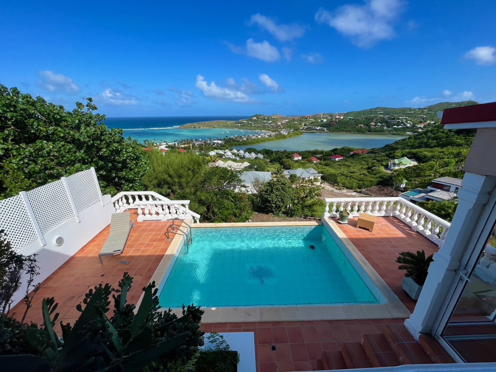 La villa TURQUOISE bénéficie d’une vue panoramique sur le lagon de Grand Cul-de-sac et l’océan.
